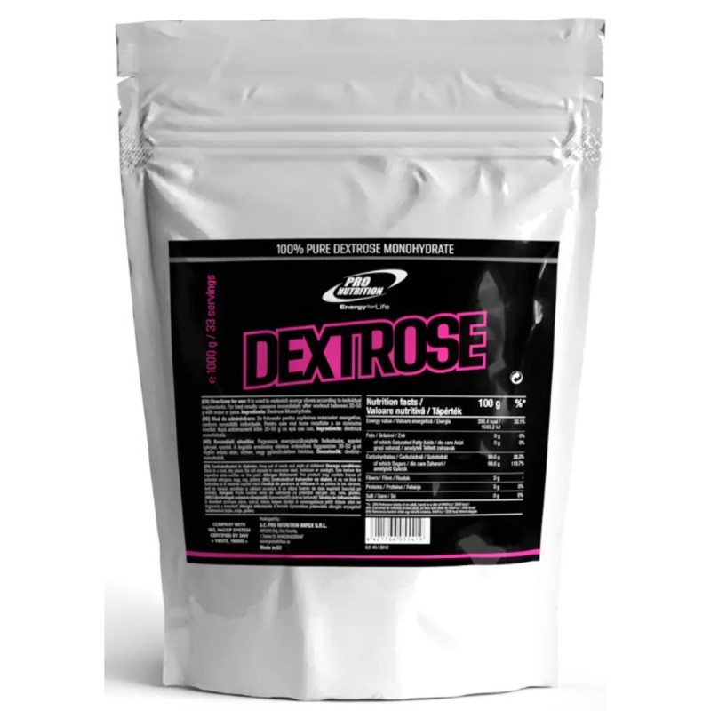 100% Pure Dextrose Monohydrate. Nutritional value 100g Energy Value 398.4 Kcal 1693.2 KJ PROTEIN 0 grams Carbohydrates 99.6g of which Sugars 99.6g Fats 0g of which Saturated Fatty Acids 0g fiber 0 grams Sodium 0 grams For best results, consume 30-50g immediately after training with water or juice. Storage and use conditions: Store in a cool place, away from light, moisture and excessive heat. Use before the expiration date indicated on the package. Allergens: May contain traces of potentially allergenic substances ( egg, soy, gluten ). Warnings! Contraindicated for diabetics. Keep out of the reach and sight of small children!